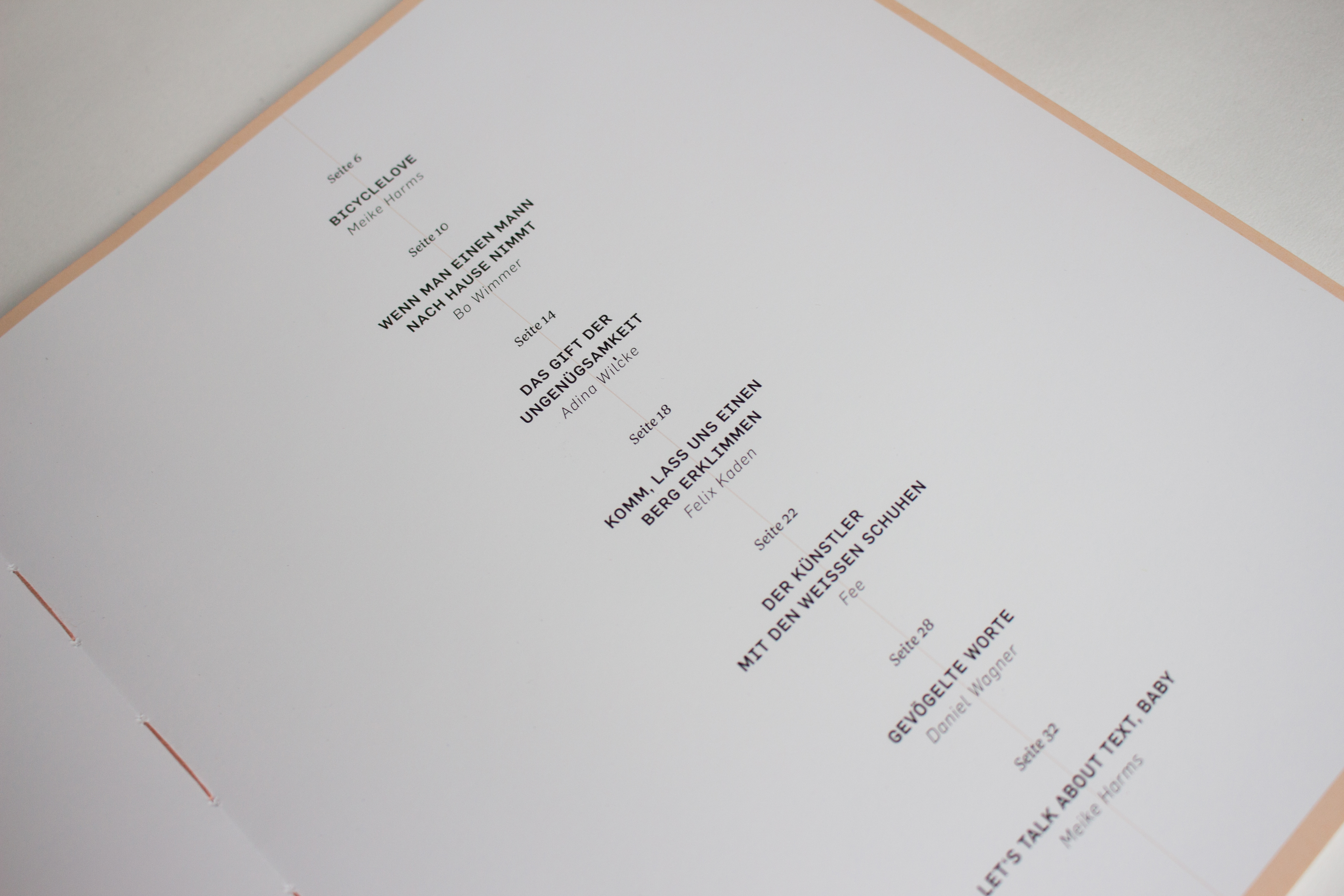 Eine Schmuckfarbe, Fadenbindung, Text und schwaz weiß Fotografie. Mehr braucht es nicht damit dieses Buch wirkt.